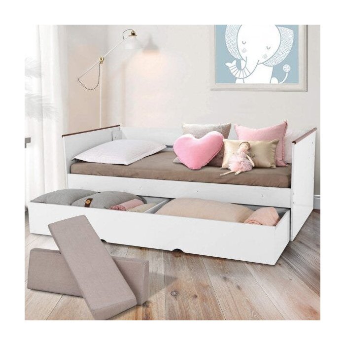 Sofá Cama Solteiro com Gaveta Angra Tebarrot Branco/Madeira