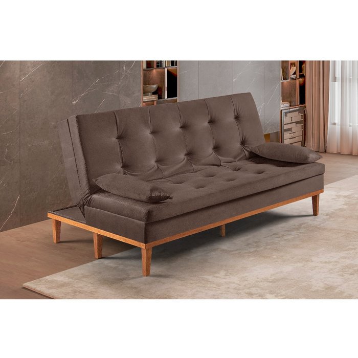Sofá Cama Toronto Veludo Marron - Nel Estofados