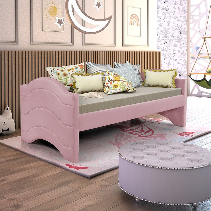 Sofá Cama Valencia em Madeira Maciça Vintage com Revestimento de Tecido Veludo Rosa - Valorize
