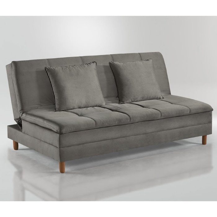 Sofá Cama Vegas 185cm Pé de Madeira Talento Móveis Prata