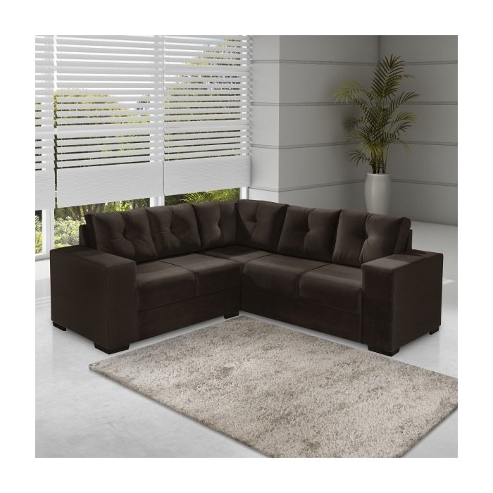 Sofá-Canto 5 Lugares Vilena - 2,00x2,00M - Veludo Marrom