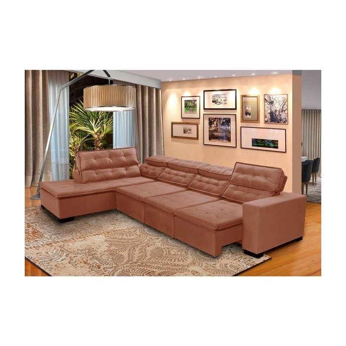 Sofá Canto Chaise 3,60M x 2,20M Retrátil Mola Bonnel Pillow D28 Stillo Veludo Rosa Escuro - Grandell