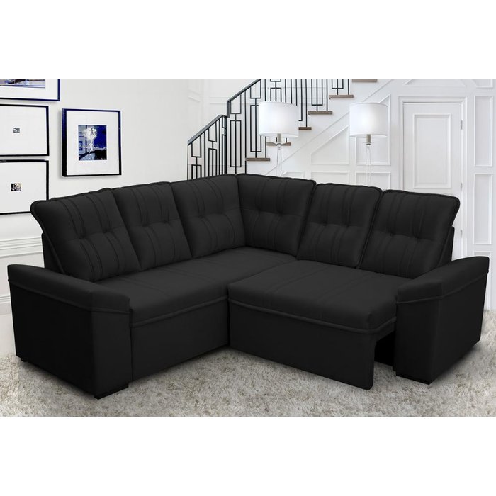 Sofá Canto London Suede Velut - King House Preto
