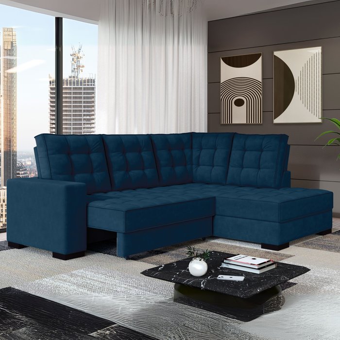 Sofá Canto Retrátil e Reclinável Munique Tamanho 220cm X 175cm Azul