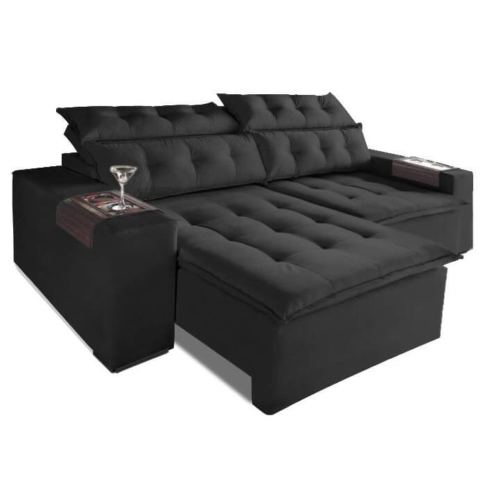 Sofá Carioca Retrátil E Reclinável 4 Lugares 230cm Tecido Veludo Cor Preto