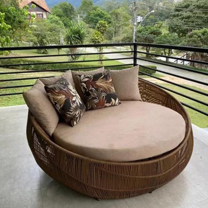 Sofá Chaise Redondo em Fibra e Alumínio Para Área Externa e Interna Chocolate/Bege