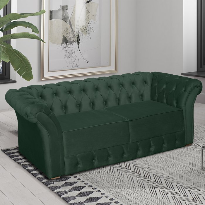 SOFA CHESTERFIELD 2 LUGARES VELUDO VERDE COM 185CM DE COMPRIMENTO