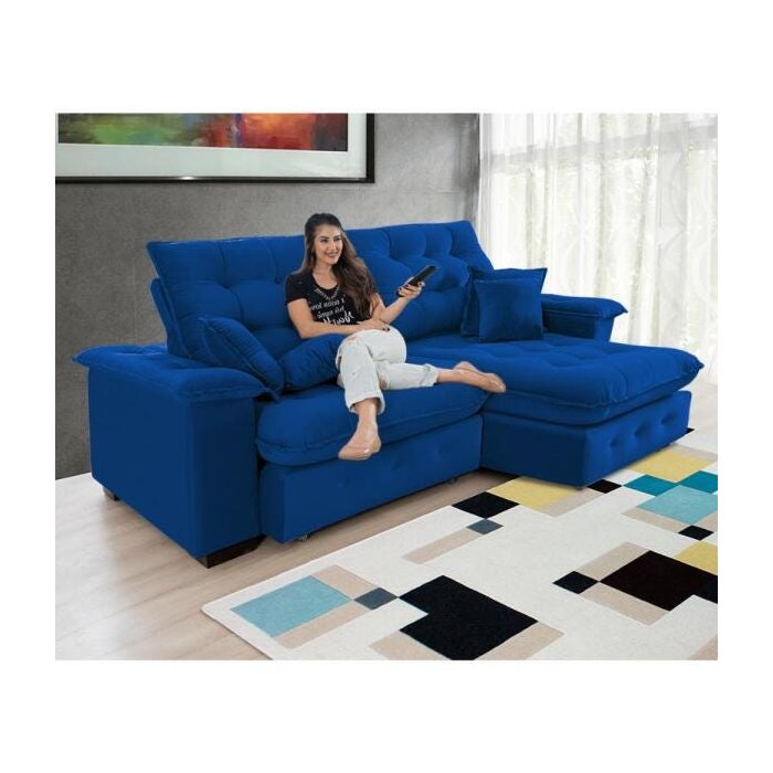 Sofá Coliseu 2.00m Retrátil e Reclinável Super Pillow Azul
