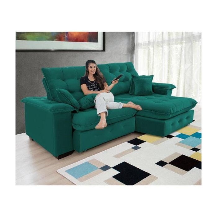 Sofá Coliseu 2.00m Retrátil e Reclinável Super Pillow Verde