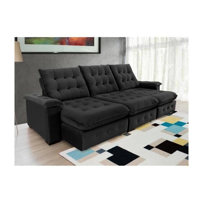 Sofá Coliseu 2.90m Retrátil e Reclinável Super Pillow Preto