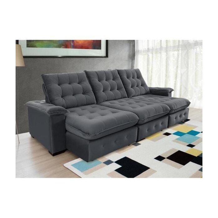 Sofá Coliseu 2.90m Retrátil e Reclinável Super Pillow Chumbo