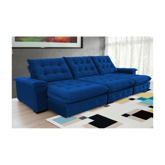 Sofá Coliseu 370cm Retrátil e Reclinável Super Pillow Azul