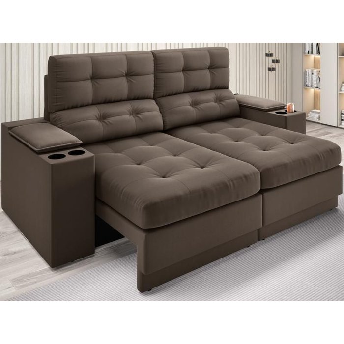 Sofá com Porta Copos e Carregador Usb Eureka 1,70m Assento Retrátil e Reclinável Velosuede -