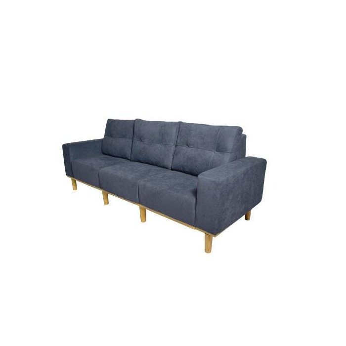 Material: Estrutura em Madeira Pinus, Pés em Madeira Pinus, Preenchimentos em Espuma D28 e Manta Siliconada, Almofadas em Pluma Siliconada, Revestimento em Tecido Poliéster, Percintas Elásticas