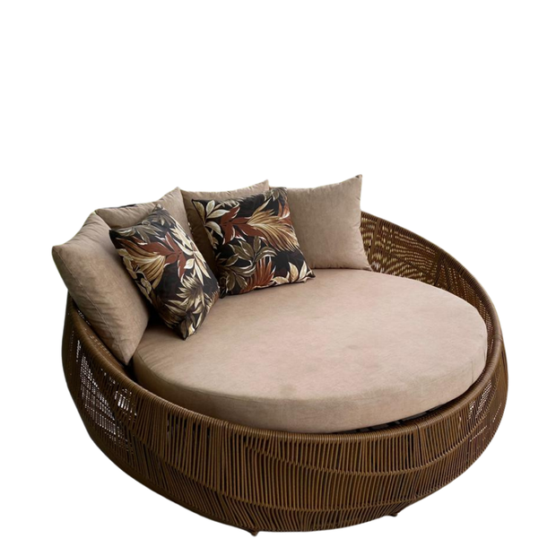 Sofá Concha Redonda 1,50m em Fibra Sintética para Área Externa Jardim e Sacada Bege