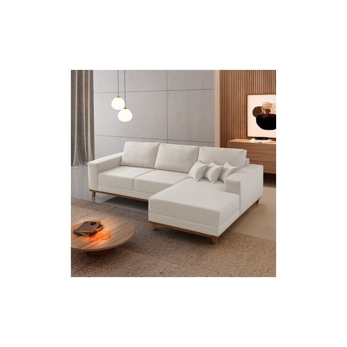 Sofá Cronos 03 Metros Chaise Lado Direito Meu Sofá Online A302 LINHO BRANCO