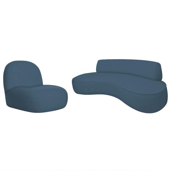 Sofá Curvo 160cm 2 Lugares E 1 Poltrona Orgânico Amsterdã Linho - Doce Sonho Móveis Cor Azul Royal