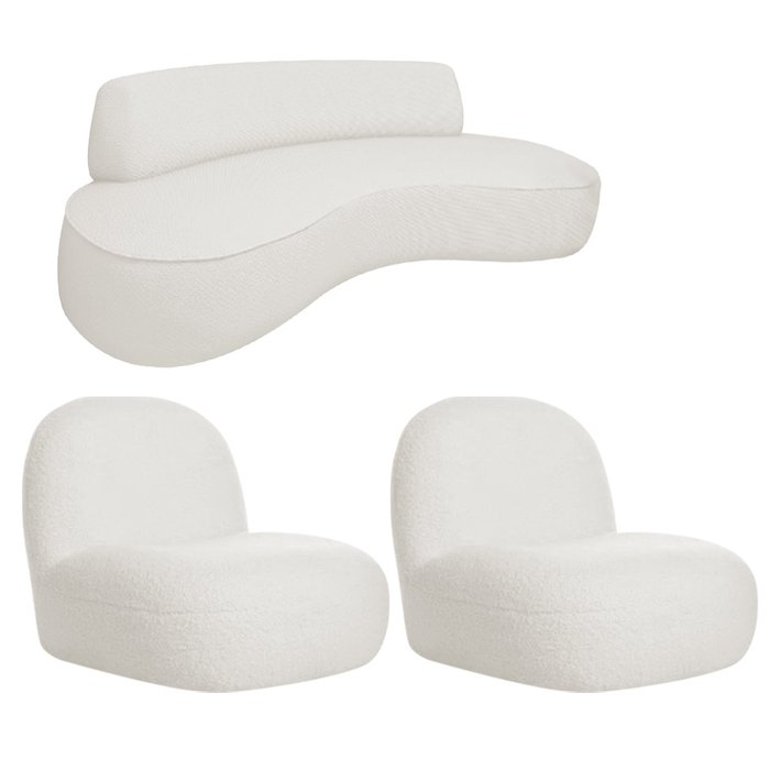 Sofá Curvo 180cm 2 Lugares e 2 Poltrona Orgânico Amsterdã Bouclé - Amarena Móveis Branco