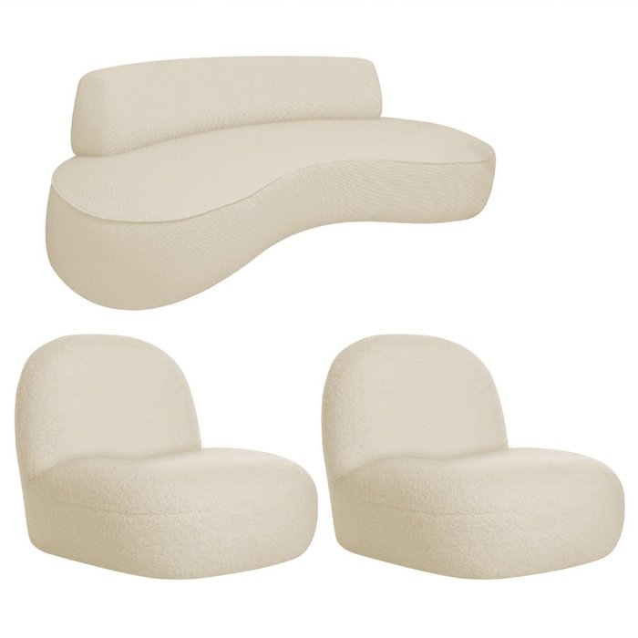 Sofá Curvo 180cm 3 Lugares e 2 Poltrona Amsterdã Linho Bege - Amarena Móveis Bege