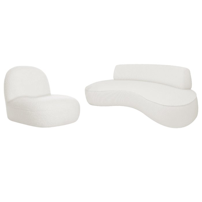 Sofá Curvo 200cm 3 Lugares e 1 Poltrona Orgânica Amsterdã Bouclé - Amarena Móveis Branco