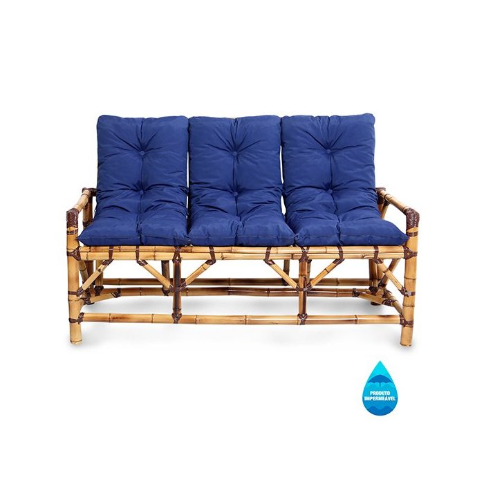 Sofá de Bambu 3 Lugares com Almofadas Impermeáveis Azul