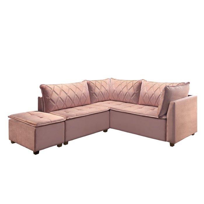 Sofá de Canto 05 Lugares Buritis - Velutto Rosa Antigo