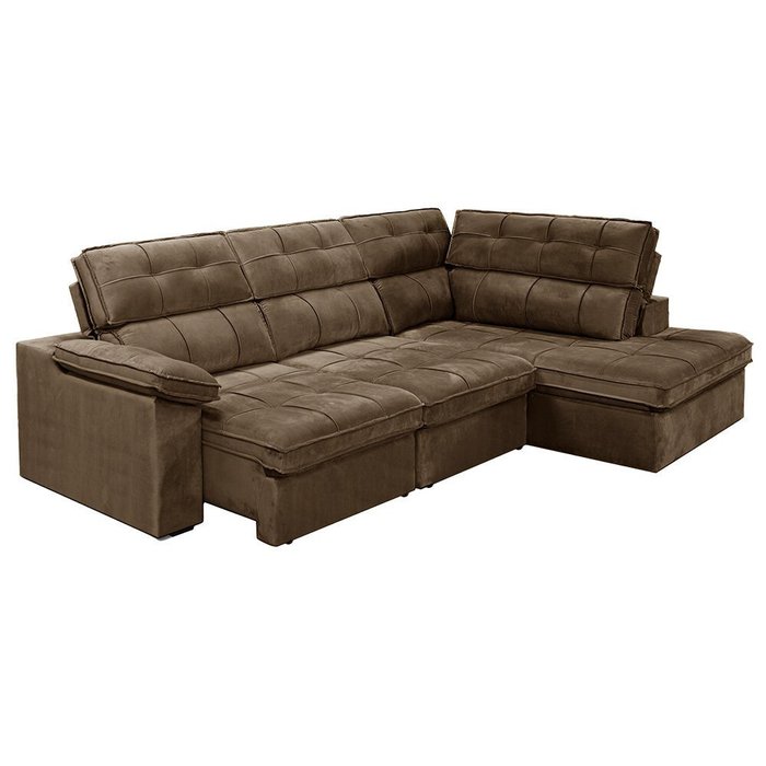 Sofá de Canto 2,84 x 2,0 m Gralha Azul Bragança, Retrátil e Reclinável, Direito Chocolate
