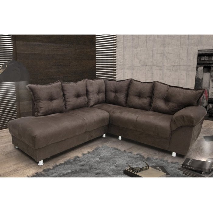 Sofá de Canto 2 e 3 Lugares Chicago com Almofadas Soltas Gazin - Suede Amassado Marrom