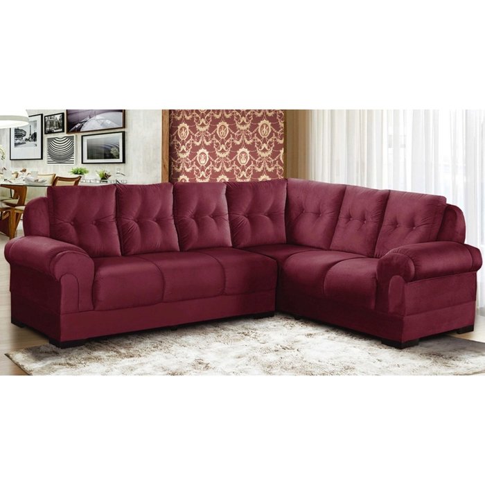 Sofá de Canto 2 e 3 Lugares Suede Vegetale Vinho Savana Pérola Vinho