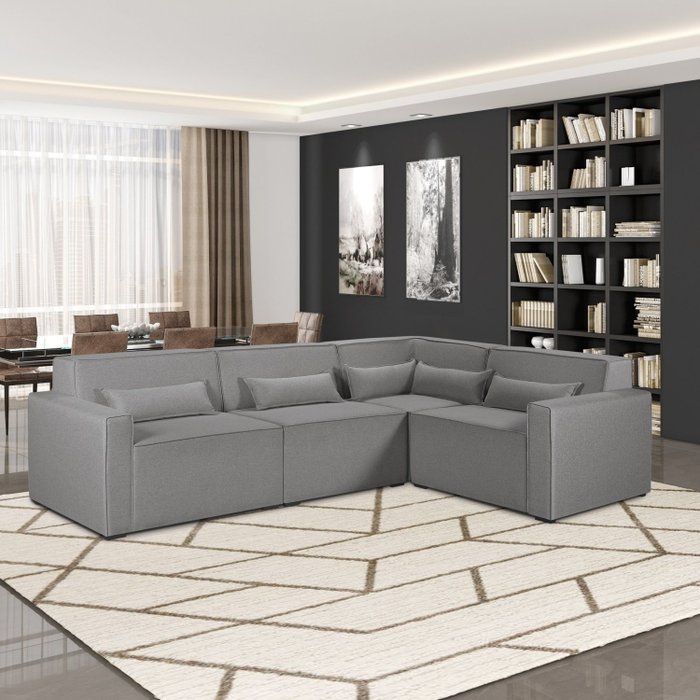Sofá de Canto 4 Lugares 284cm Linho Lutz Yescasa Cinza
