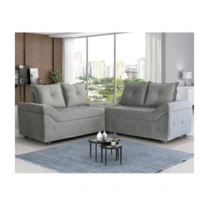 Sofá de Canto 4 Lugares Veludo Jardim Estofart Cinza