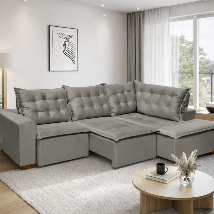 Sofá de Canto 5 Lugares 270cm Retrátil e Reclinável Cinza