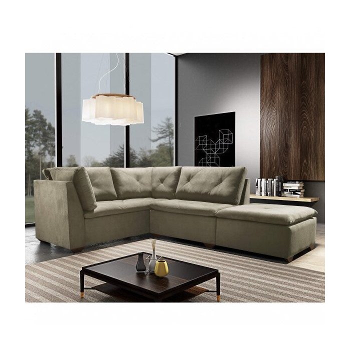 Sofá de Canto 5 Lugares com Puff Espresso Móveis Bege