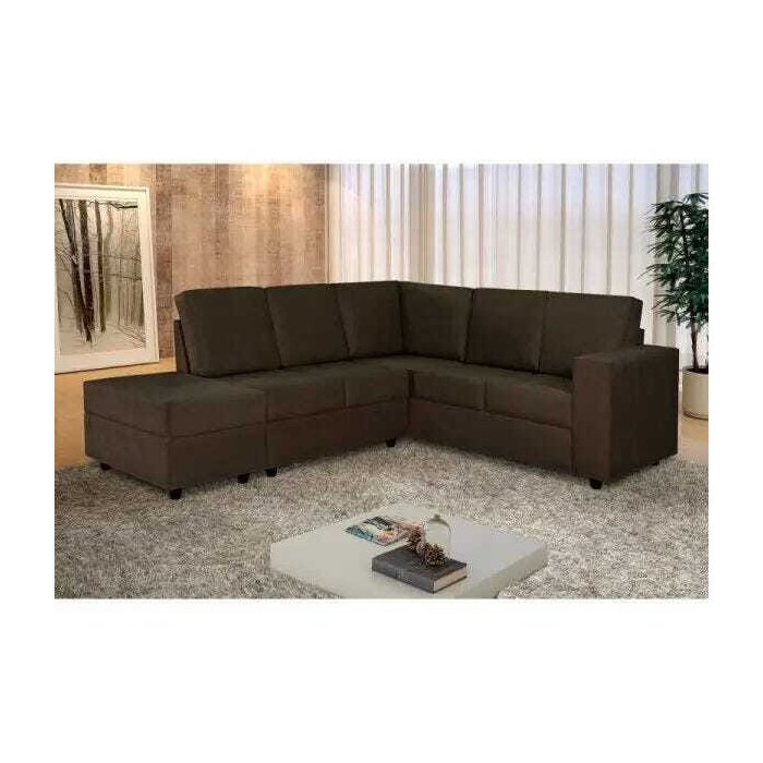 Sofá de Canto 5 Lugares com Puff Sofia Pena 1,96M x 1,01M Chocolate