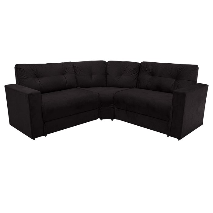 Sofá De Canto 5 Lugares para salas pequenas - Encosto fixo - Espuma D28 - Preto preto
