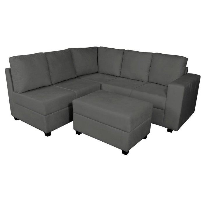 Sofá De Canto 5 Lugares Sofia Com Puff 1.96m X 1.01m Veludo Cinza