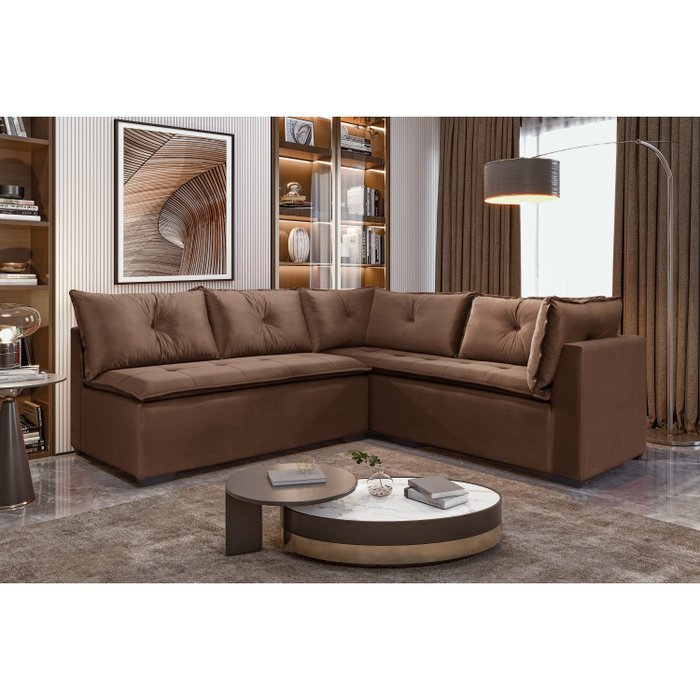 Sofá de Canto 6 Lugares 238x220cm Veludo Jundiaí Marrom