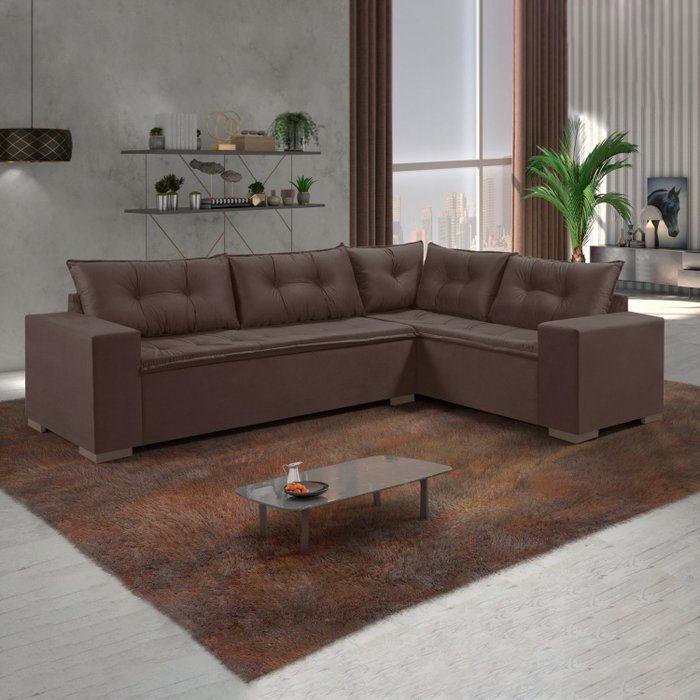 Sofá de Canto 7 Lugares 300x210cm M146 Martins Estofados Suede/Marrom Chocolate