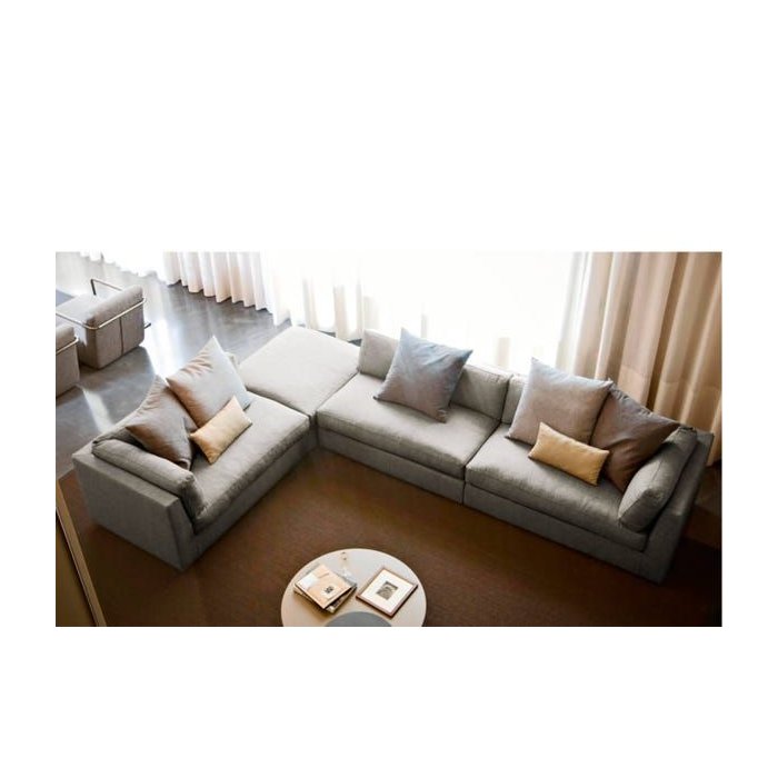 Sofá de Canto, 7 Lugares, Revestimento em Sarja Cinza, - Lan004 Cinza