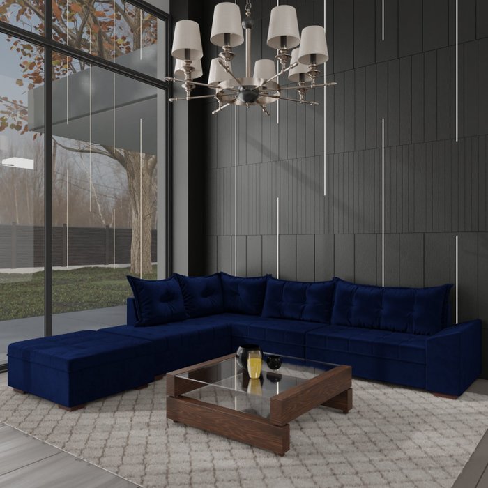 Sofá de Canto 9 Lugares com Puff Itapema Azul
