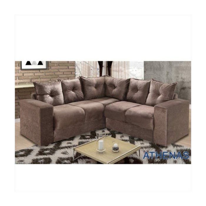 Sofá de Canto Athenas com Encosto Fixo e 6 Almofadas Soltas Family Estofados - Marrom Cestaplus