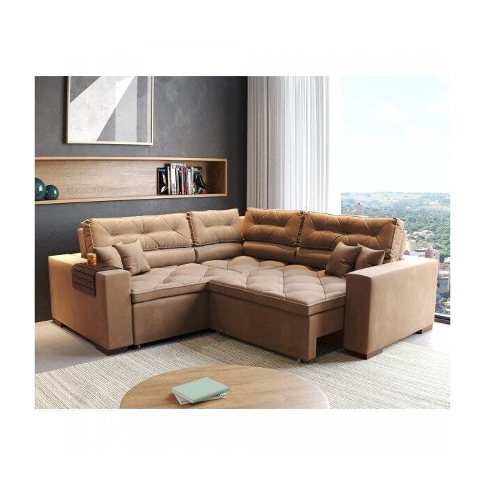 Sofá de Canto Bahia 2,70x2,70m Retrátil, Reclinável com Molas e Almofadas Espresso Móveis Bege