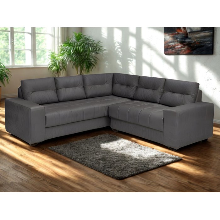 Sofá de Canto Berlim 5 Lugares União Estofados Veludo Cinza Veludo Cinza