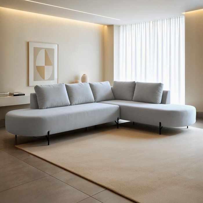 Sofá de Canto Boreal Base de Ferro Direito Bouclé Cinza