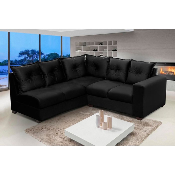 Sofá de Canto Califórnia 4 Lugares, com Molas Espirais, 1,66x1,83 Metros, Espuma Densidade D28, Pret