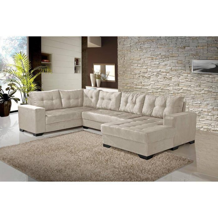 Sofá de Canto com Chaise Bia Império Estofados Areia