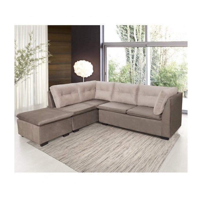 Sofá de Canto com Puff 4 Lugares Velut Stilo Hellen Estofados