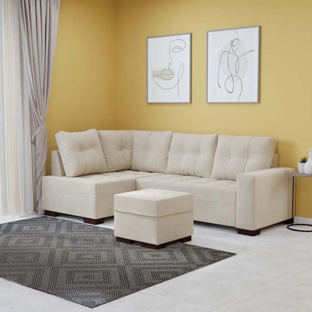 Sofá de Canto com Puff 6 Lugares 238cm Gávea Bege