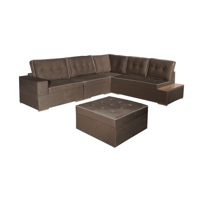 Sofá de Canto King com Puff Bom Pastor Tecido Veludo - Marrom