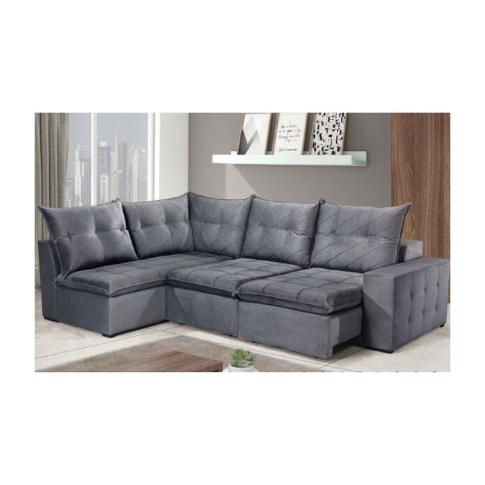 Sofá de Canto Retrátil Alfenas Estofados Teixeira Cinza Cestaplus
